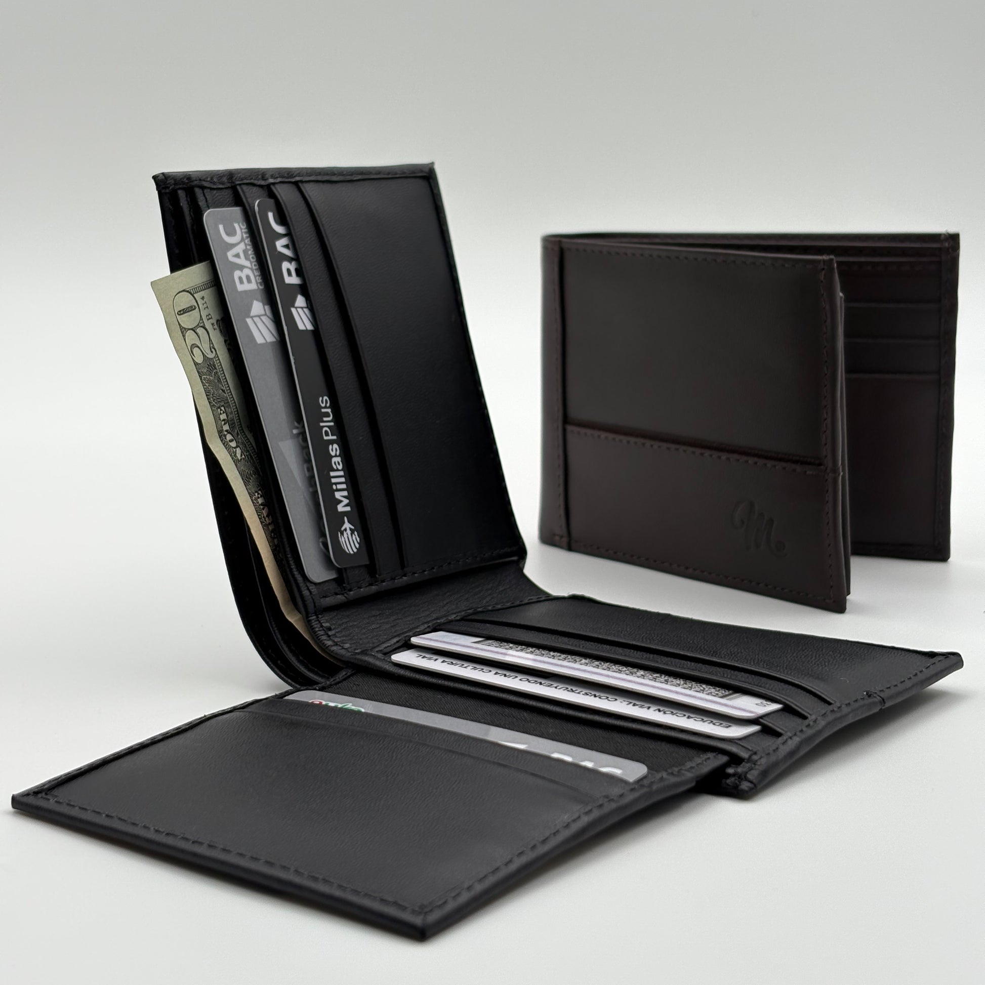 • 2 compartimentos amplios para billetes