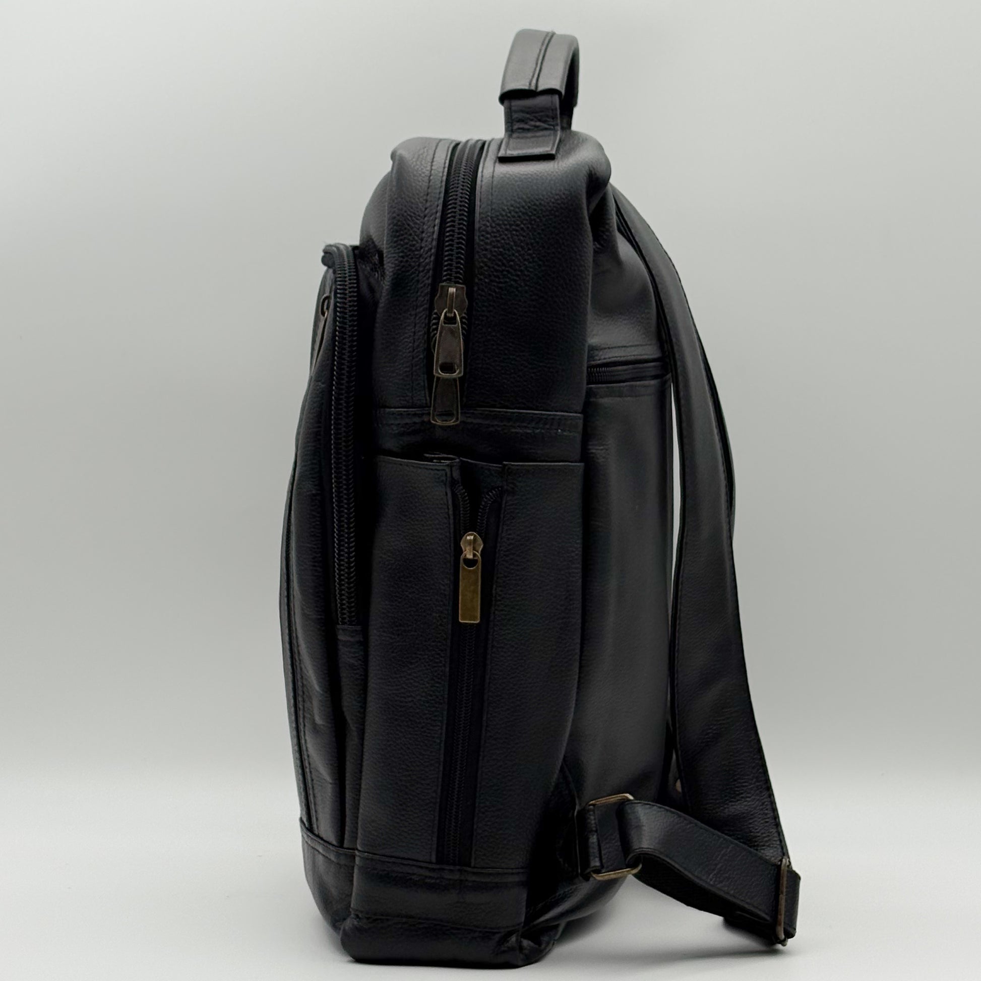 Esta mochila en color negro combina practicidad y distinción. Perfecta para el trabajo, la universidad o viajes de negocios. Su interior amplio permite llevar todo con orden y su estructura en cuero le da un acabado profesional que resalta en cualquier entorno.