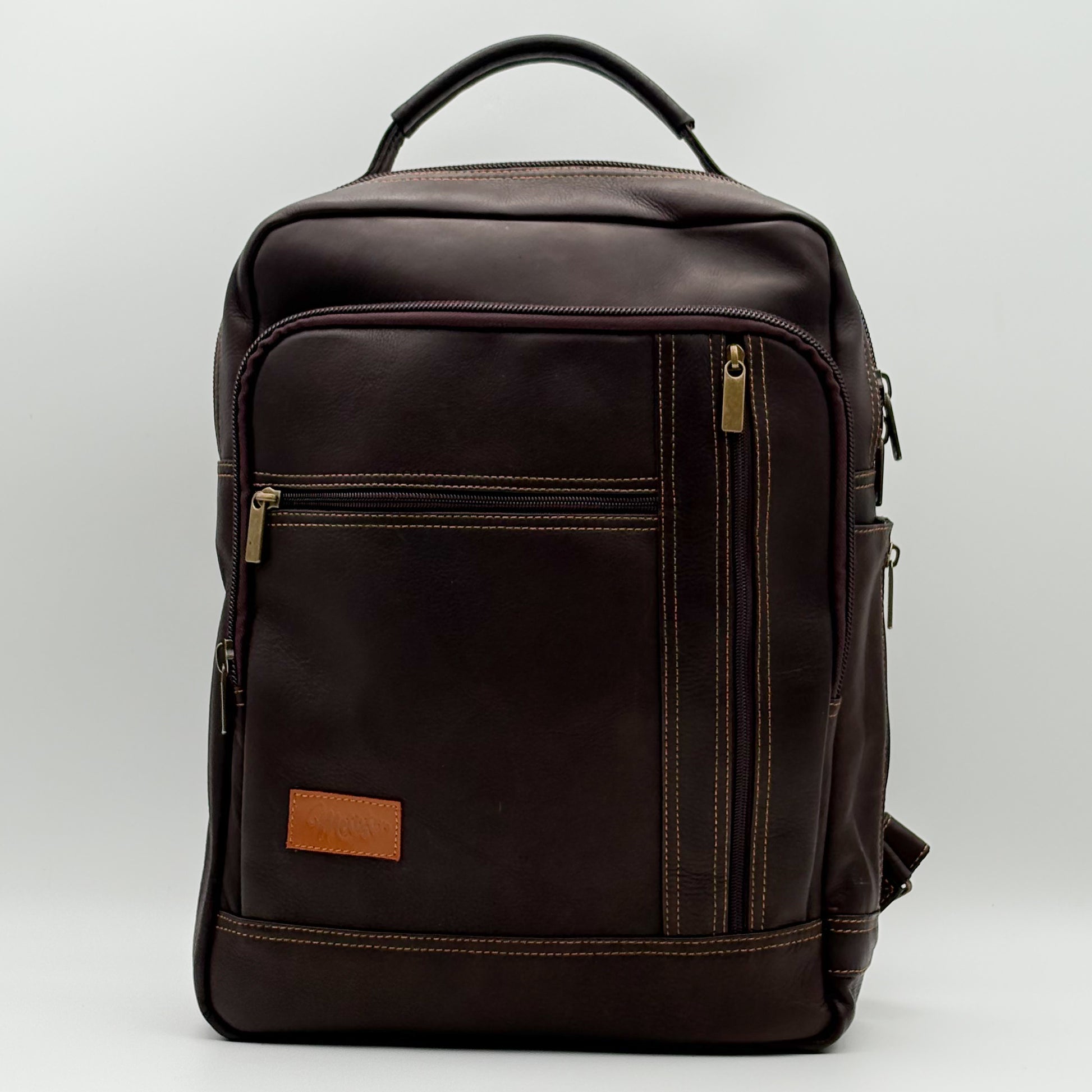 Esta mochila en tono café oscuro combina practicidad y distinción. Perfecta para el trabajo, la universidad o viajes de negocios. Su interior amplio permite llevar todo con orden y su estructura en cuero le da un acabado profesional que resalta en cualquier entorno.