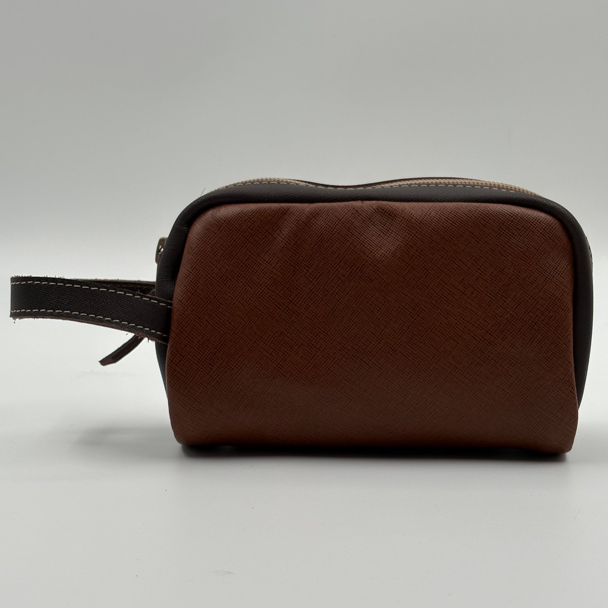 Diseño compacto y funcional en cuero legítimo café claro, con vivos y detalles en tono café oscuro que aportan contraste y calidez. Su tamaño mediano es ideal para organizar lo esencial con estilo.