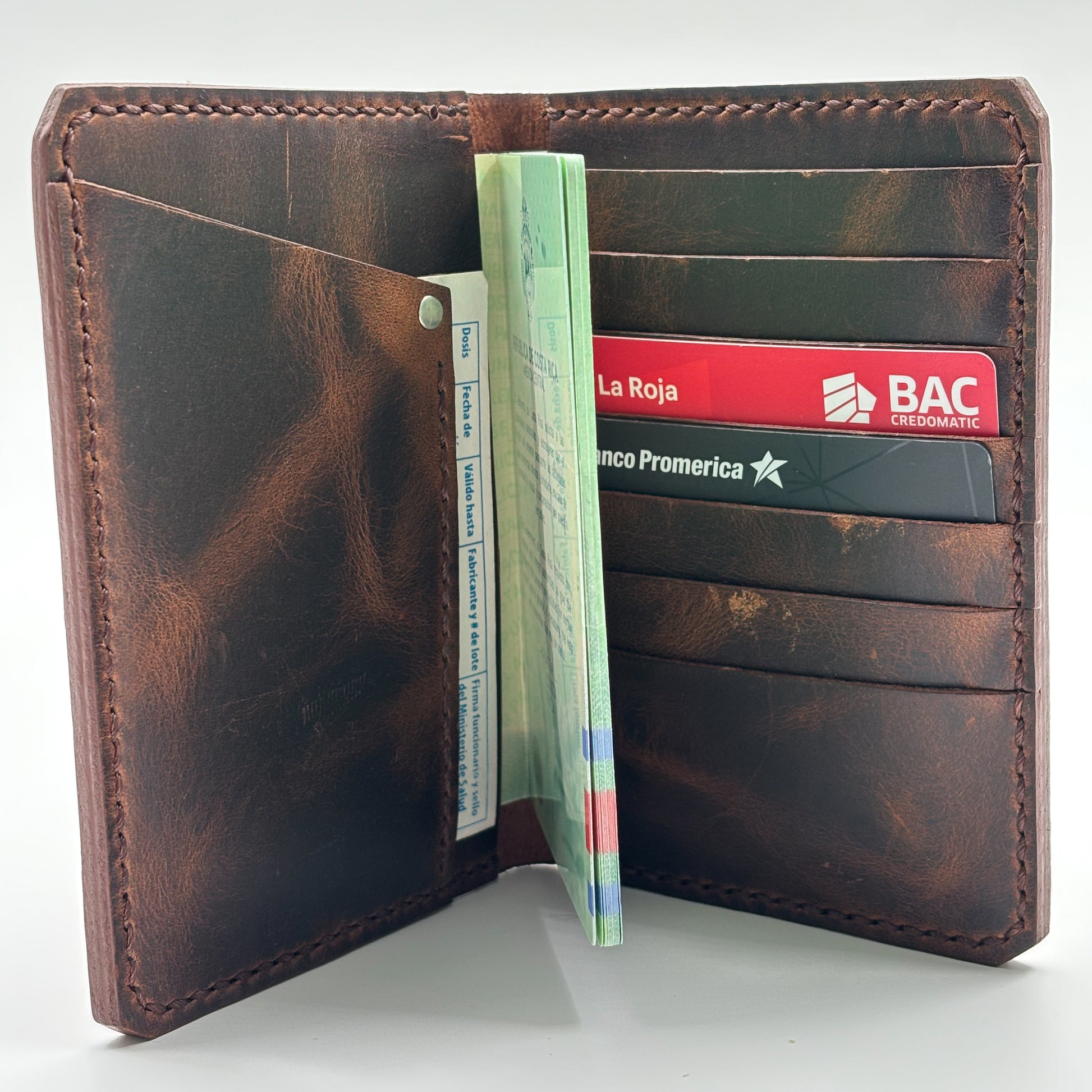 El modelo Élite en café oscuro destaca por su acabado envejecido, estructura firme y costuras visibles que realzan la artesanía. Ideal para quienes prefieren accesorios con presencia.