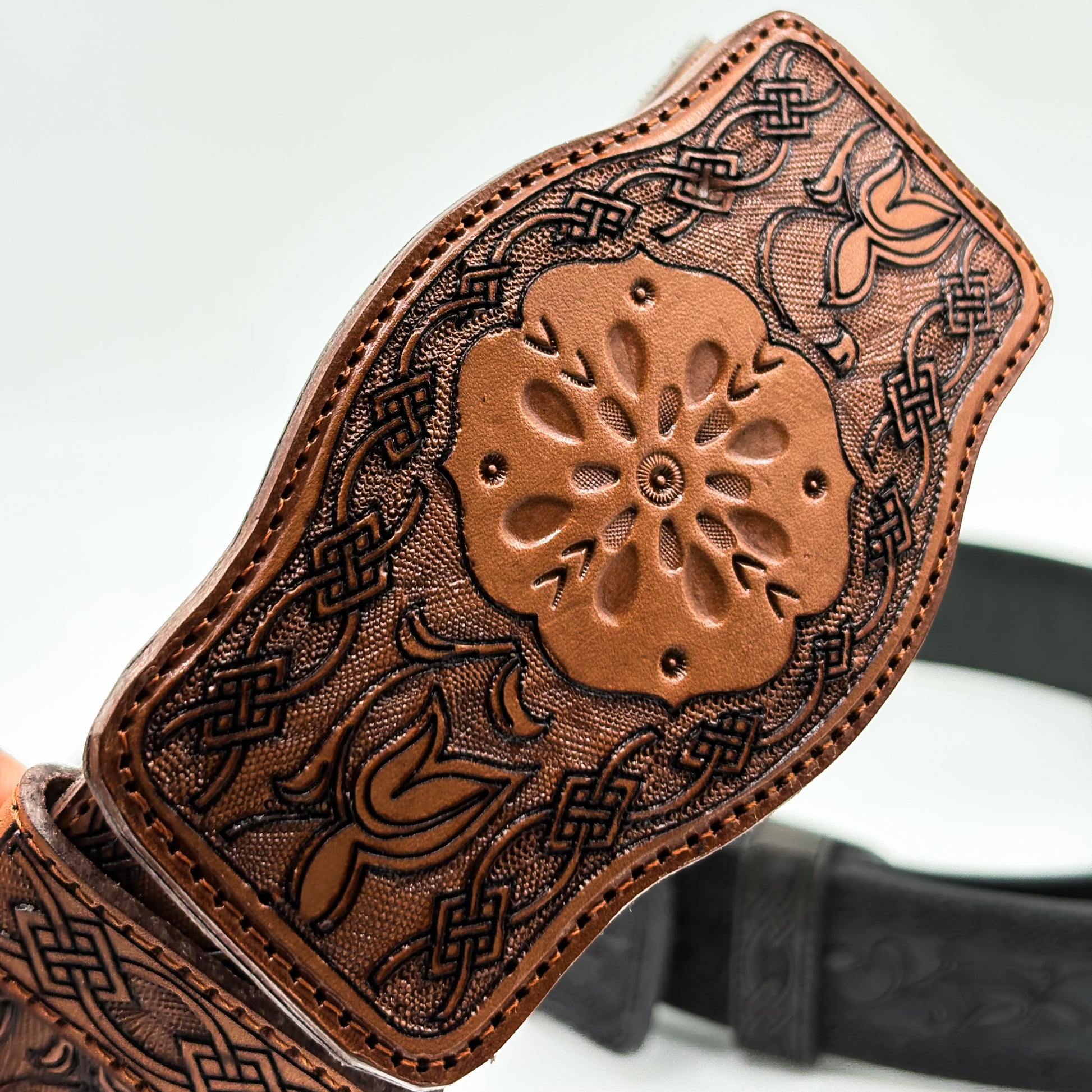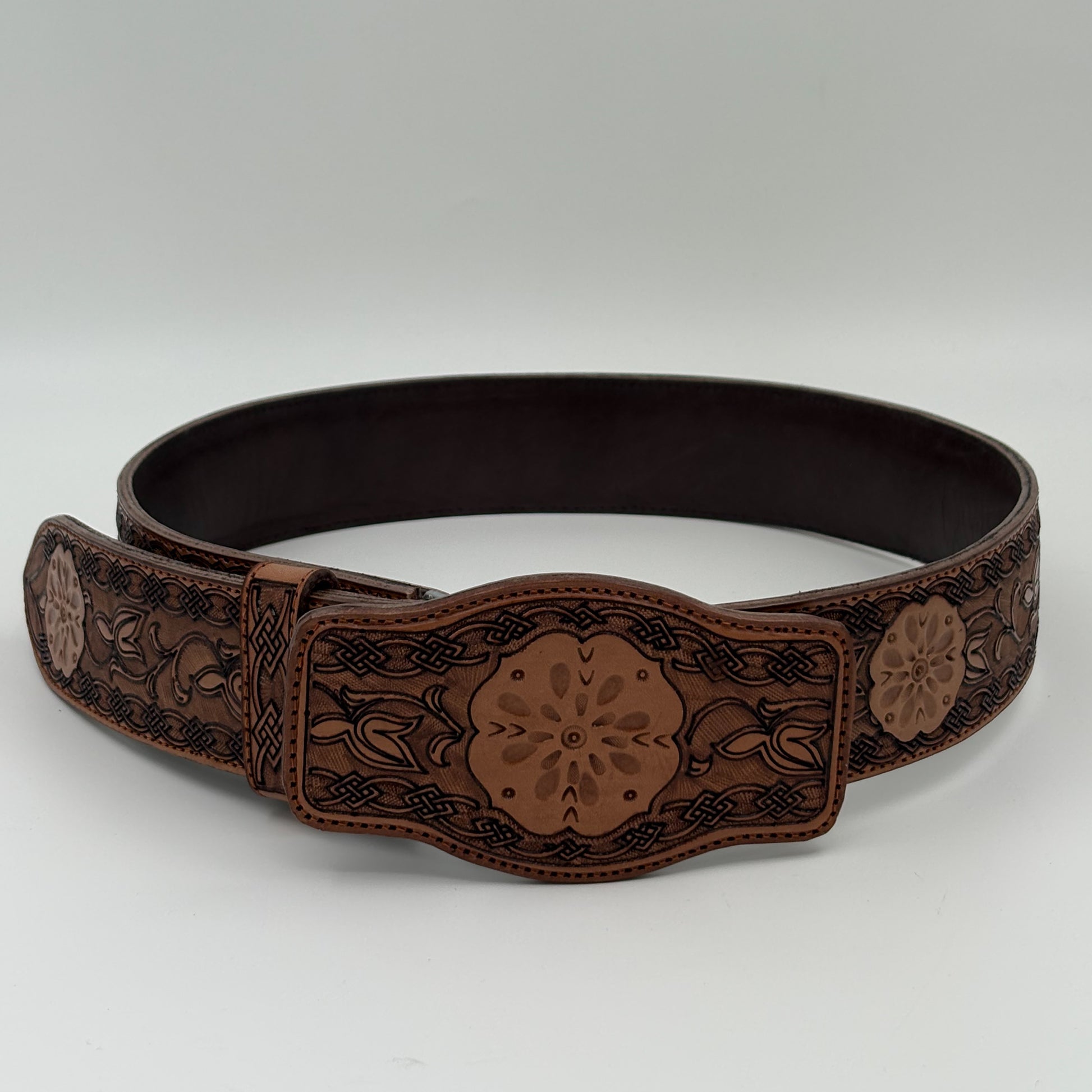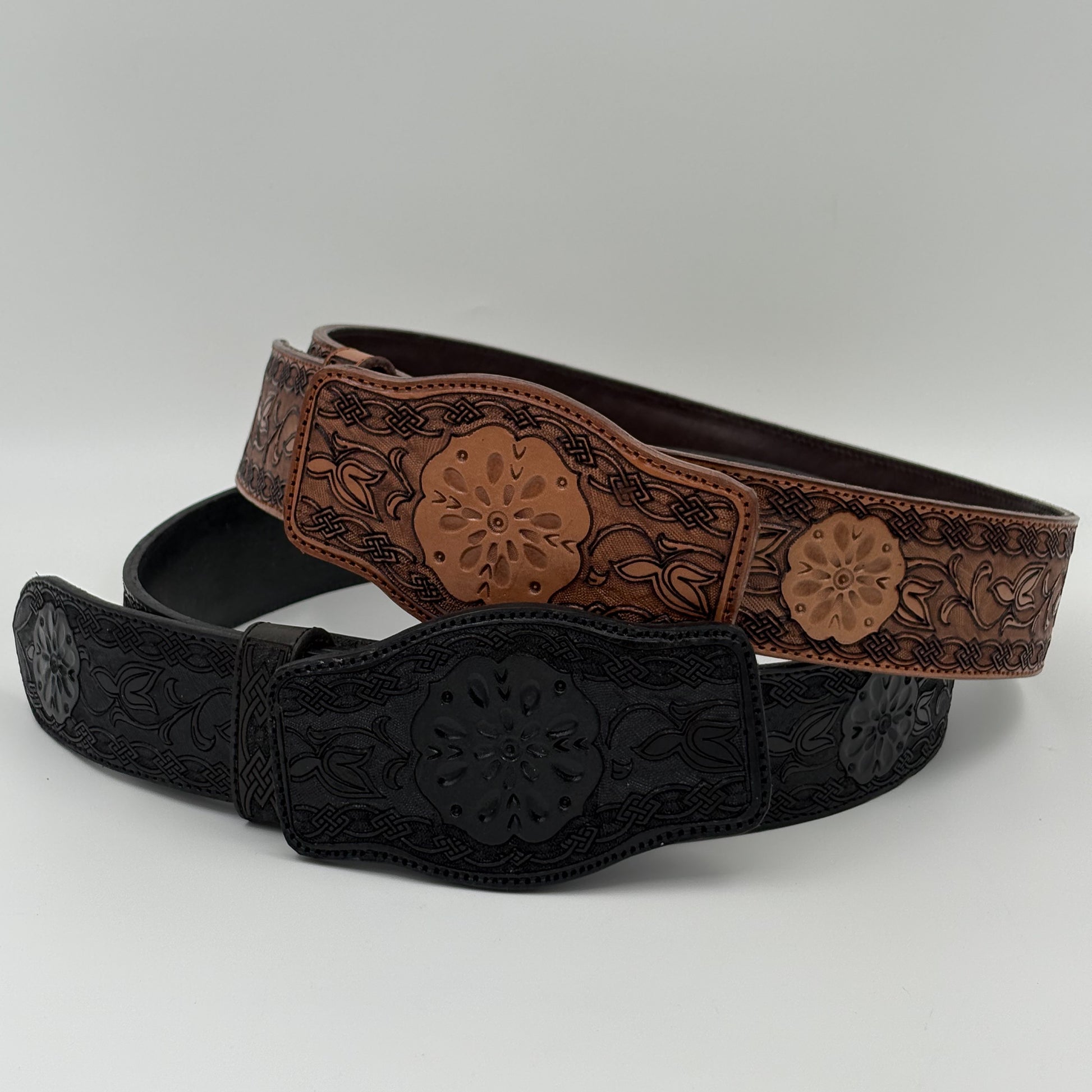 Elegante y artesanal, la Faja Flor de Cuero combina el color cálido del cuero natural con un diseño floral troquelado a mano. Ideal para complementar atuendos vaqueros, urbanos o tradicionales con un toque lleno de carácter.