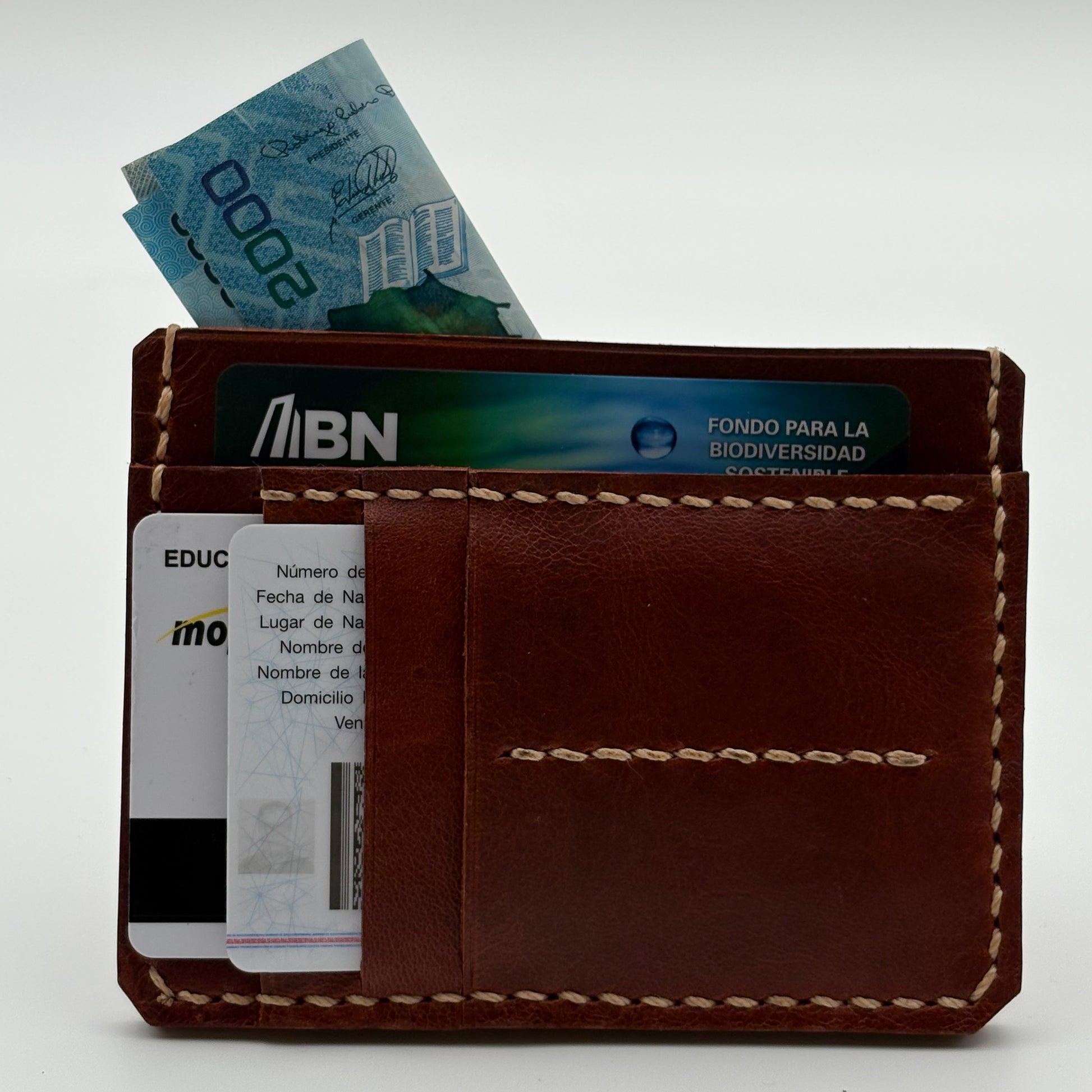 Este tarjetero en color coñac que combina diseño compacto con un acabado moderno. Perfecto para guardar tus esenciales sin ocupar espacio de más. Ideal como complemento de bolso o para usar directamente en el bolsillo.
