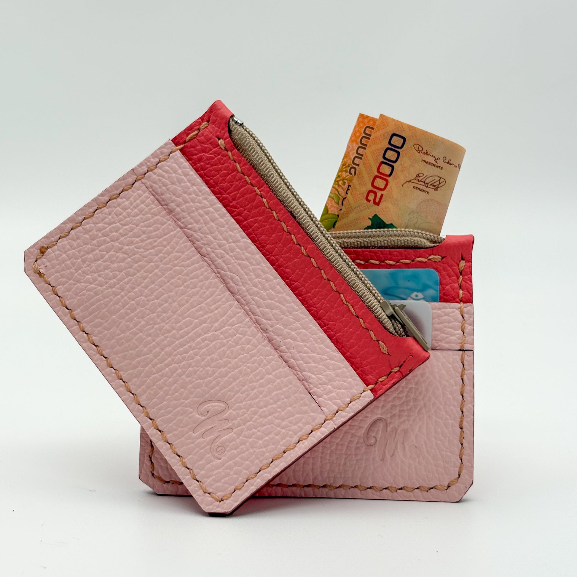 Tarjetero rosado y salmón