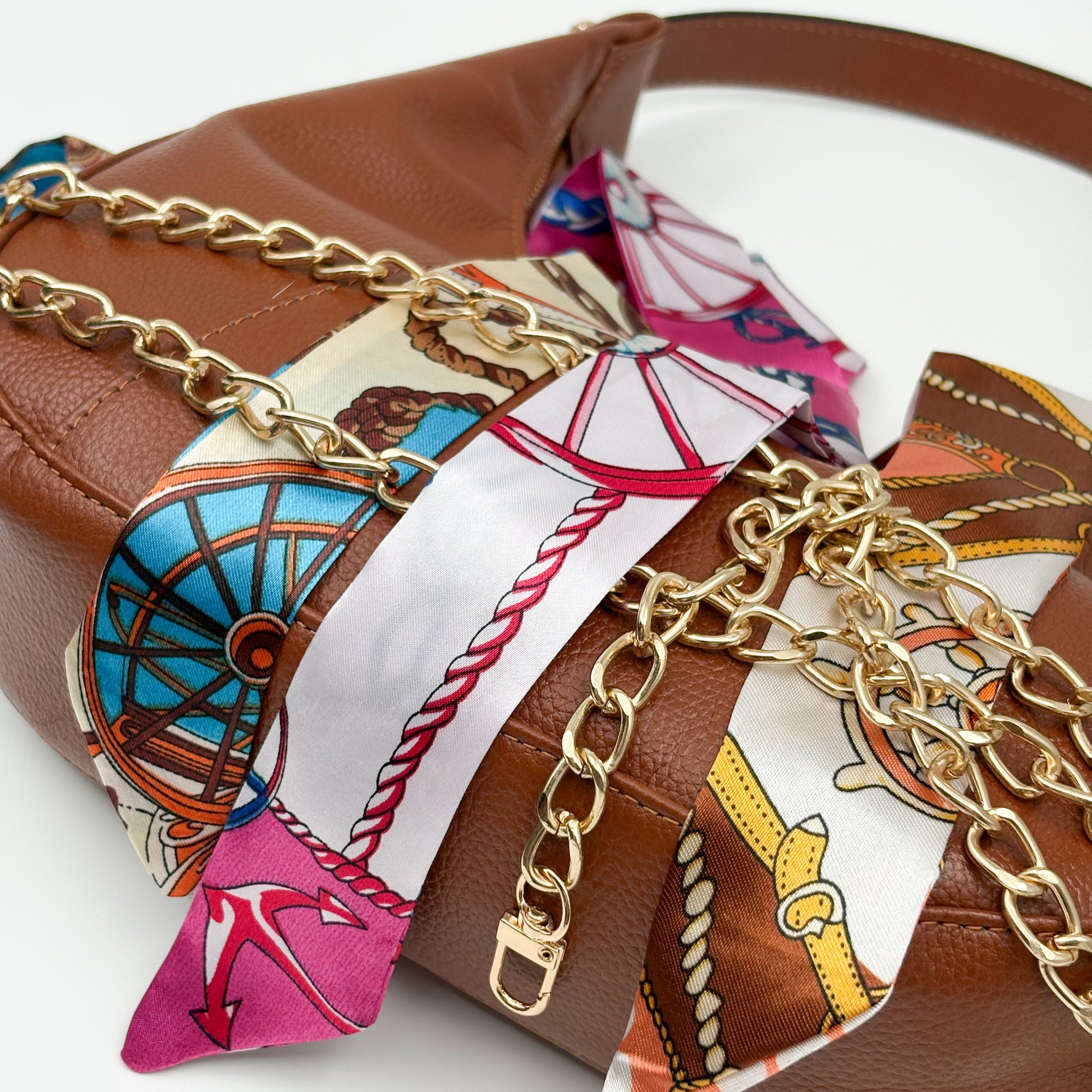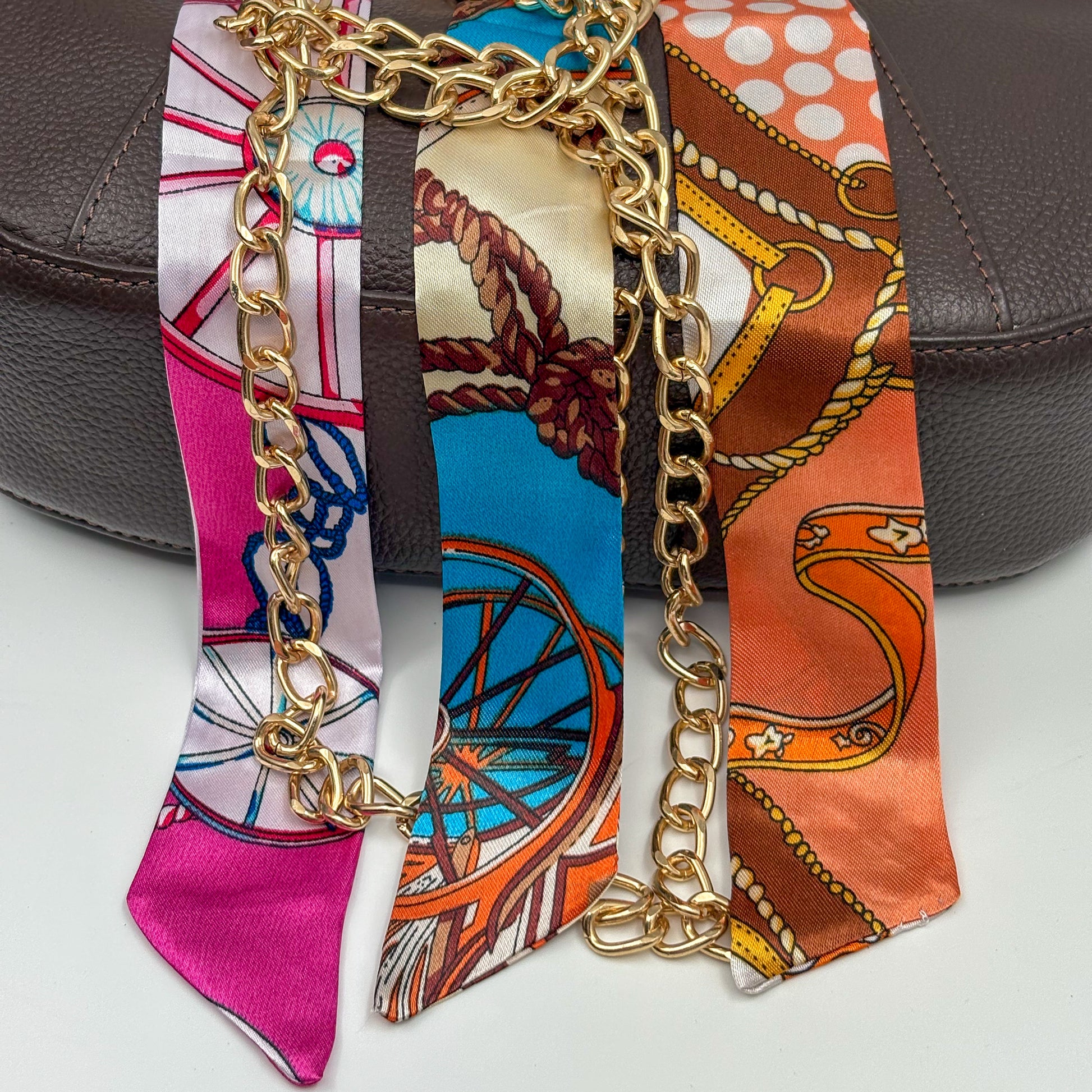 ¡El accesorio perfecto para elevar cualquier look! Nuestros twillies vienen en MUCHOS colores y estilos. En las imágenes podrás ver solo una parte de la variedad disponible: florales, geométricos, animal print, dorados tipo cadenas, rayas, puntos y más.
